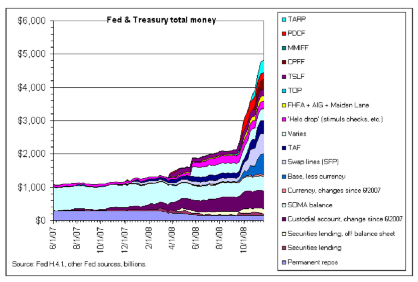 Some of the more active central banks like the U.S. Fed act as a lender of last resort during a financial crisis. The Fed has already expanded its balance sheet from about $800 billion to over $2 trillion and rising fast. It does this by buying toxic paper from troubled financial institutions in an attempt to get them lending again. However, the credit markets are still frozen, banks aren’t lending and businesses cannot raise capital. Obviously, that’s not working well either. It’s no wonder that some people are calling for the abolition of central banks!