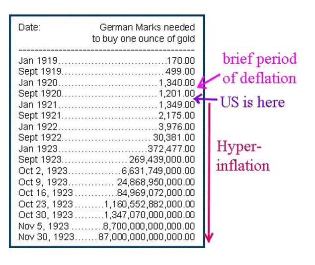 It’s only since September of 2008 that unimaginable amounts of cash have actually been “injected” in the form of asset purchases and monetization (more detail later) and this will likely result in massive inflation in future. Typically, it takes about 18 months for changes in the money supply to translate into a change in prices. Given the vast monetization that desperate governments have initiated (they always overdo it; they never learn) this will probably result in hyper-inflation. Gold bugs and those invested in precious metals may have to wait a while. On the other hand, it gives us a little more time to buy gold at prices that, in future, will seem ridiculously cheap.