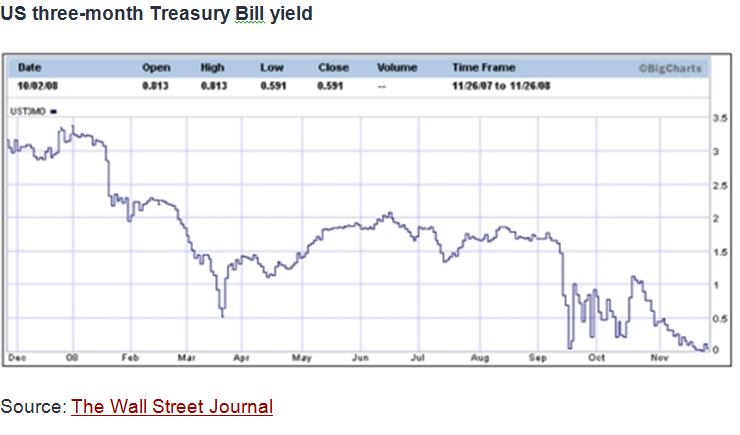 There is a debate among analysts whether we are faced with deflation or hyper-inflation. Always beware of “either/or” debates. In this case it’s not one or the other; it will be both but at different times. Right now we are in a price deflation as asset and commodity prices fall. There is a massive amount of deleveraging (more detail later) but once the deleveraging is done, deflation will turn to hyper-inflation. Although governments globally have “injected” trillions of dollars into the financial system, until recently this was in the form of short-term loans that were continuously rolled over. So, these “trillions” was really a couple hundred billion continuously rolled over. In any case, it failed to solve the credit crunch because banks are still hoarding cash and still aren’t lending.