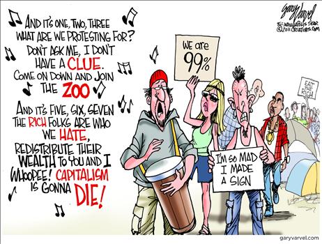 Although many of the Occupiers demonstrate, what they really demonstrate is how dumbed-down and clued-out people have become. This will make it so much easier for the Powers-That-Be to lead, misdirect and obfuscate the real issues. See this.