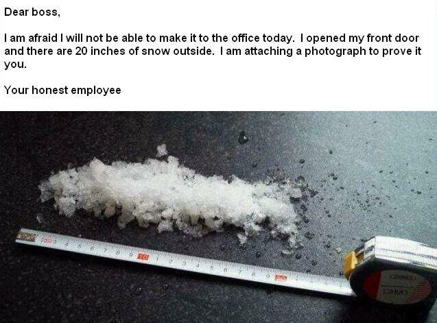 Dear boss-20 inches of snow