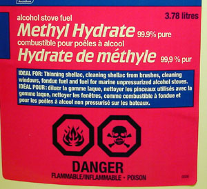 Warning: the plastic jug sprung a leak after several years. I suspect the plastic jug was never intended for long term storage and the fluid corroded the plastic. This is dangerous because Methyl Hydrate is very flammable; after all it’s used in alcohol fuel stoves and fondue pots.