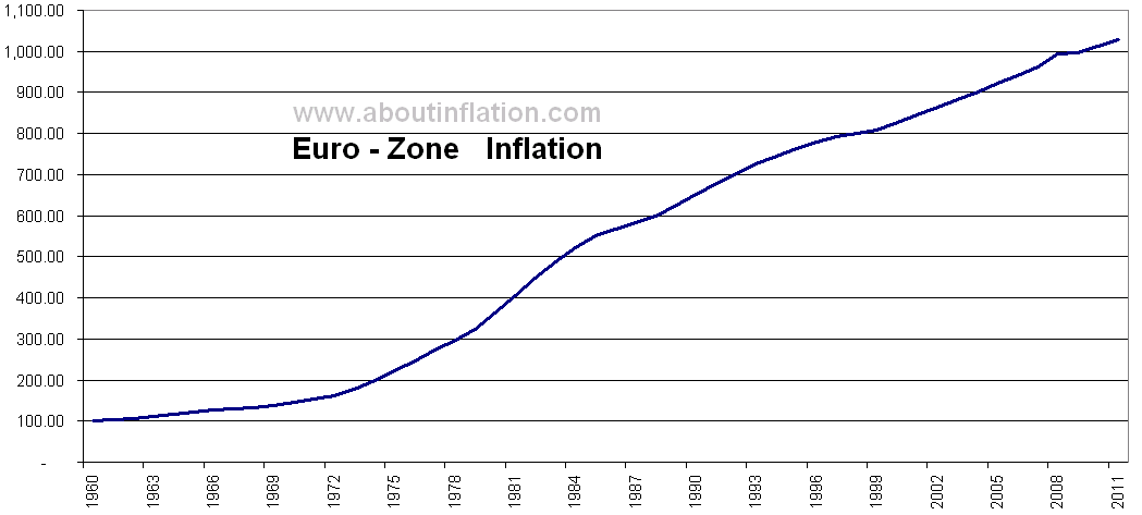 And it’s not just Canada and the U.S. that experienced rapid inflation and shrinking economies. Below, Australia, the UK and the Eurozone are almost identical as are ALL western economies; taking off after 1971.