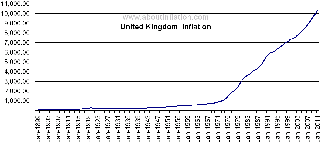 Whatever you could purchase with $100 CAD in year 1914, you have to spend $1,948 Canadian in 2010 to purchase more or less the some goods. And that’s based on cooked numbers. Using the real inflation rate you’d have to spend much more.