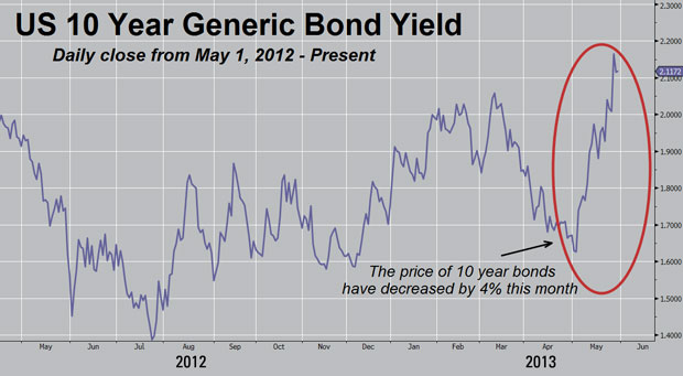 Bonds (debt) are the largest bubble the world has ever seen. Bubbles burst. The bond bubble has begun to burst.