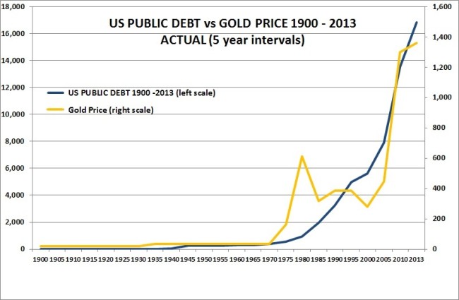 “Look at the chart below, and you’ll see that the divergence started taking place when the Federal Reserve started expanding our monetary base after the 2002 crash (with the largest spikes occurring after the 2008 crisis) and when the U.S. government turned to tripling our national debt.”