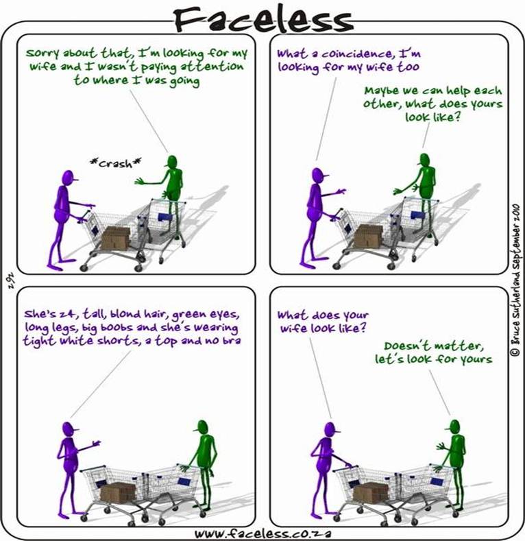 “Oh, forgive me, sweetheart,” begged the wife. “I didn’t send that one, either.”