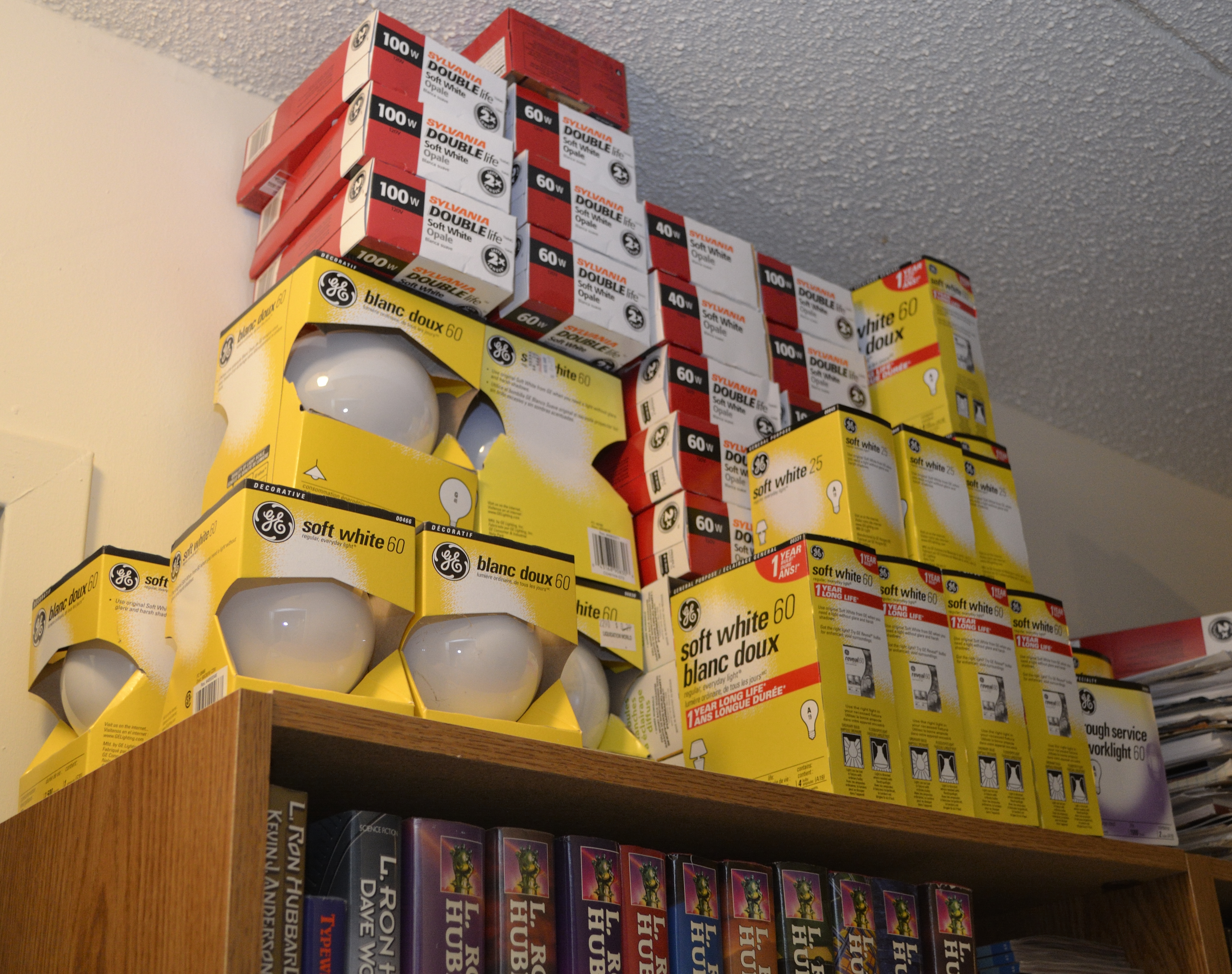 Light bulbs – the enviro-nut, tree huggers have killed the manufacture of incandescent light bulbs; replaced by various types of efficient, but expensive and poor light-quality alternatives. Below is part of my stockpile of incandescents.