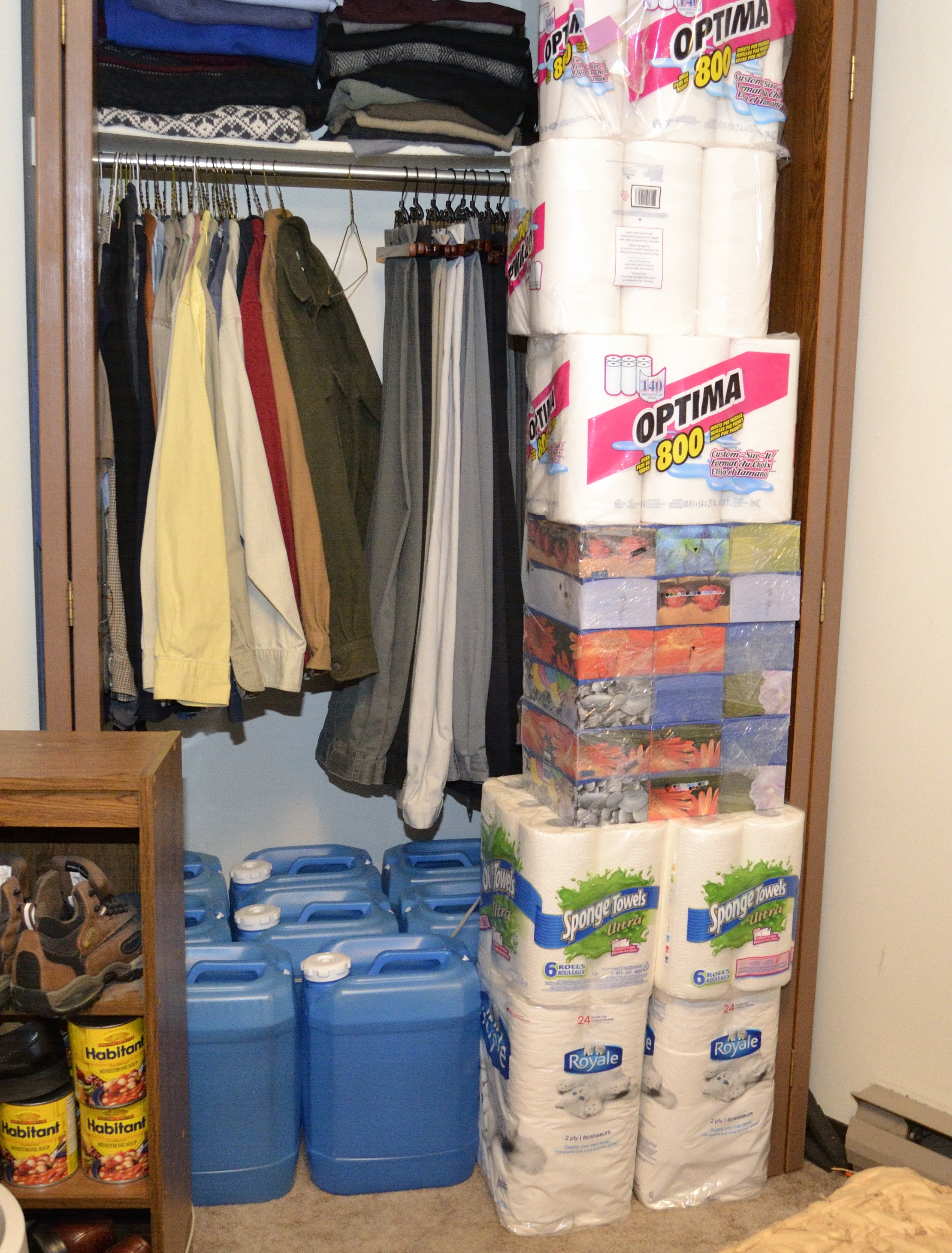 Toilet paper, tissue paper and paper towels are durable, long-lasting items that should be stockpiled and used during shortages and for barter. I store in closets, on top of book shelves and anywhere there’s room. See pictures below.