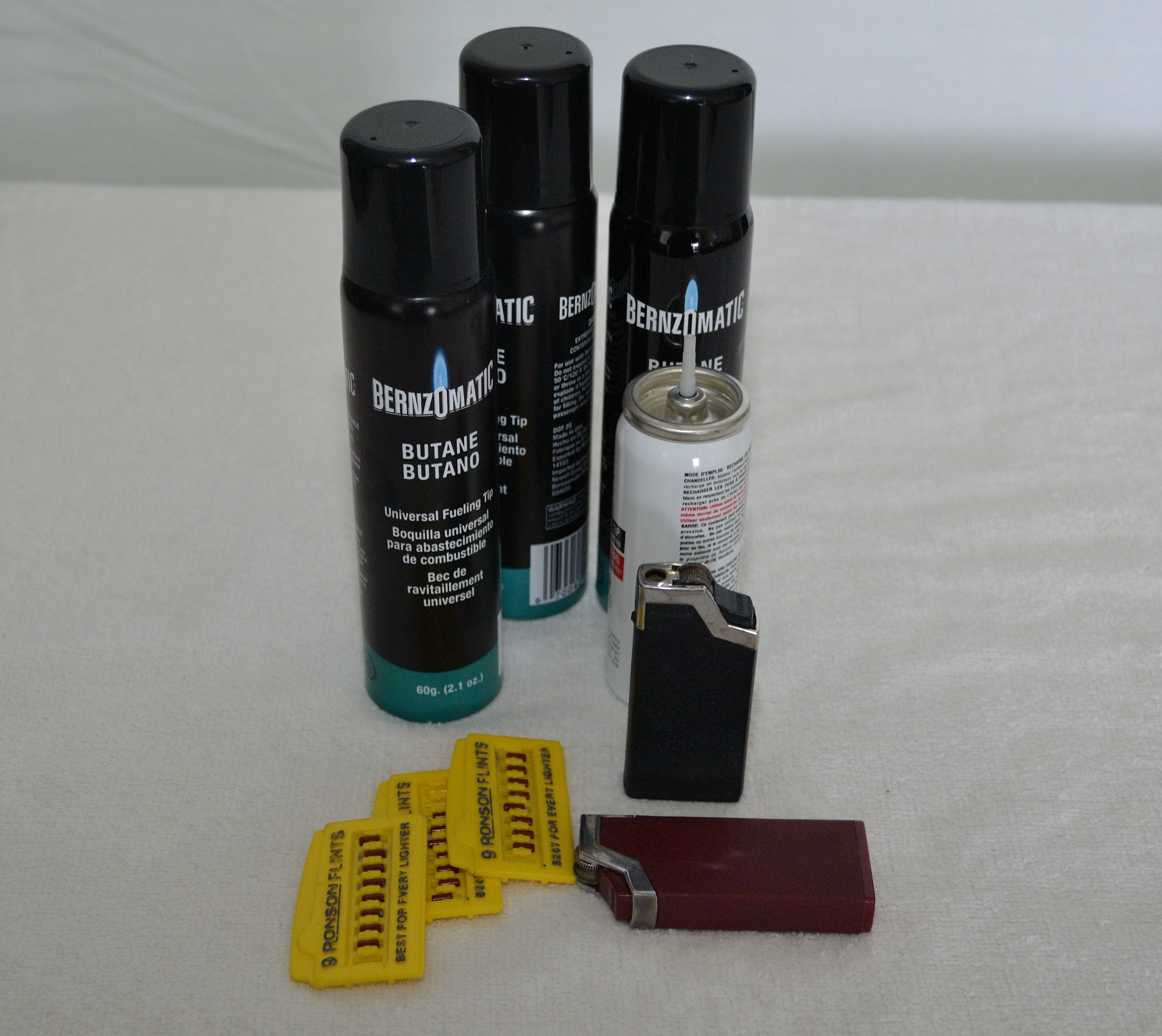 Lighters & refills – in addition to a stockpile of BIC lighters, I also have a couple of refillable lighters with Butane refills and extra flints in the picture below.