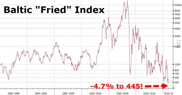 (H/t to reader Dan) Mish Shedlock wrote there is freighter traffic albeit very little volume. He says, “Contrary to popular myth, shipping has not ground to a halt. However, shipping volumes and shipping rates have both plunged. 2015 was a disaster by any measure.